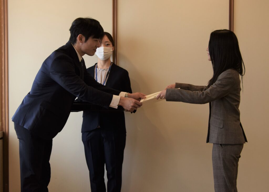 石田嵩人知事より福井県健康推進枠 義務年限終了者への感謝状贈呈式が行われました