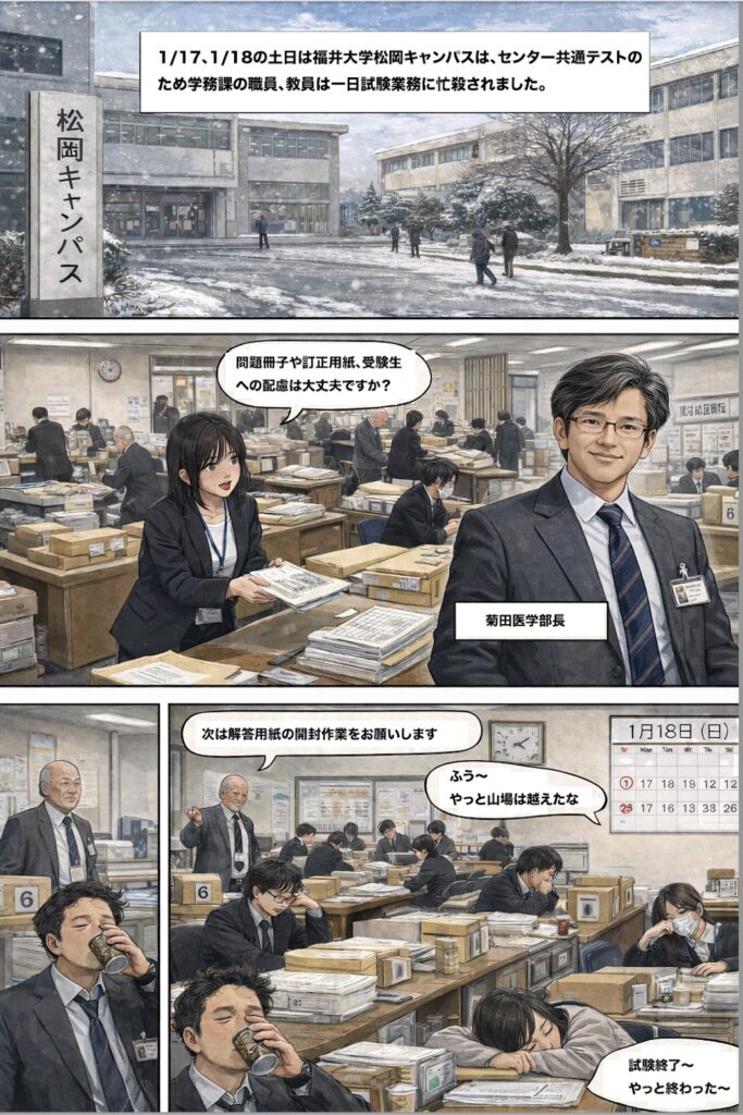 多くの教員、学務課職員、協力員のおかげで、無事大きなトラブルなく試験は終了しました。いろいろな方に公正、公平な環境を提供するということは、簡単そうに見えて大変なことだと実感します。