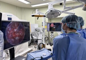 両下肢筋力低下、左下肢感覚障害の進行により歩行障害をきたした患者さんで、大学整形外科より紹介されました。下肢のDirect MEPや肛門括約筋モニタリングを行いつつ腰椎部の腫瘍を切除しました。手術後、筋力低下と感覚障害は著明に回復し、1ヶ月程度のリハビリで自宅退院し、日常生活に戻ることができました。