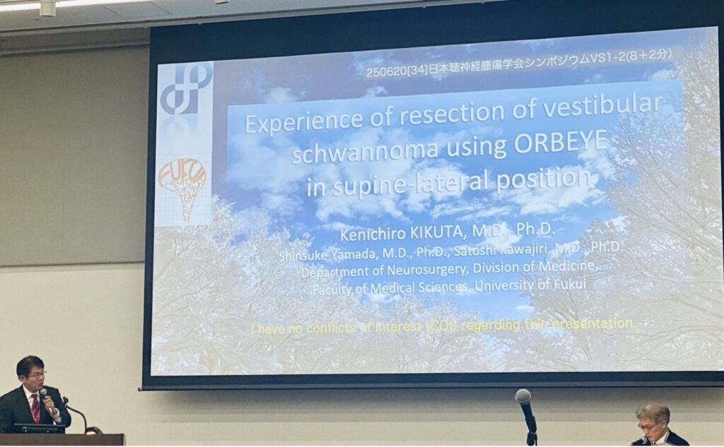 木曜日に教授会の後、飛行機と新幹線で深夜11:30に長崎に到着し2学会に参加しました。聴神経腫瘍やCP angle腫瘍に対する外視鏡の有用性の報告が増加しています。翌朝から8:20-9:20に「オーブアイを用いた内耳道進展型錐体骨髄膜腫に対する仰臥位手術の経験」、10:05-11:00に「オーブアイを用いた前庭神経鞘腫に対する仰臥位腫瘍摘出術の経験」の2演題を発表し、トンボ帰りでまた福井に戻りました。今年は予定がタイトで長崎でゆっくりすることもままなりませんでした。