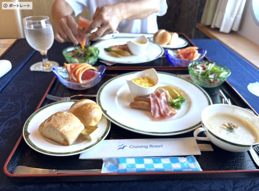 日本海は晴天で穏やかな航路でした。朝食も豪華でした。