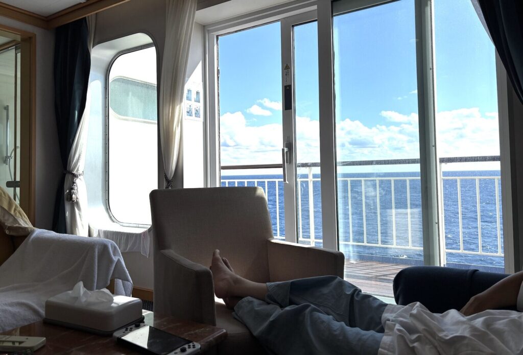 室内にはカラオケ、映画館、ジムもあり自転車を漕いで、風呂に入り午前中をのんびり過ごしました。