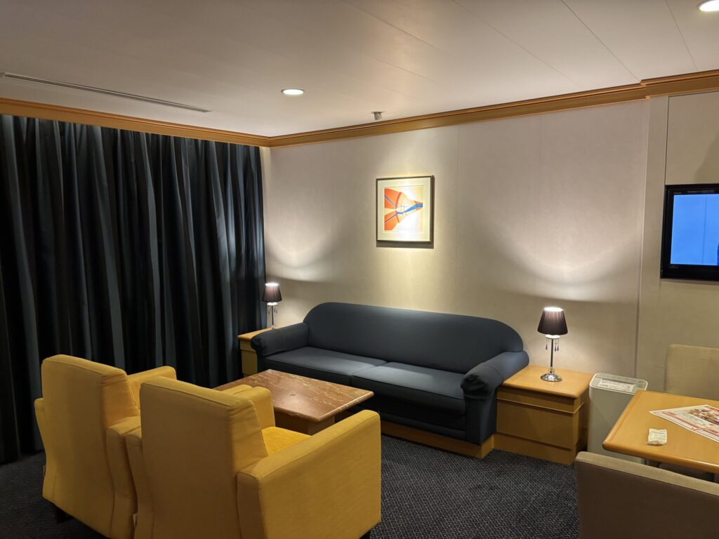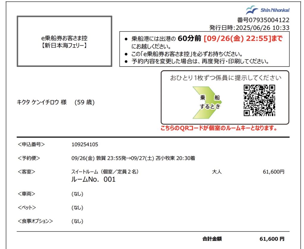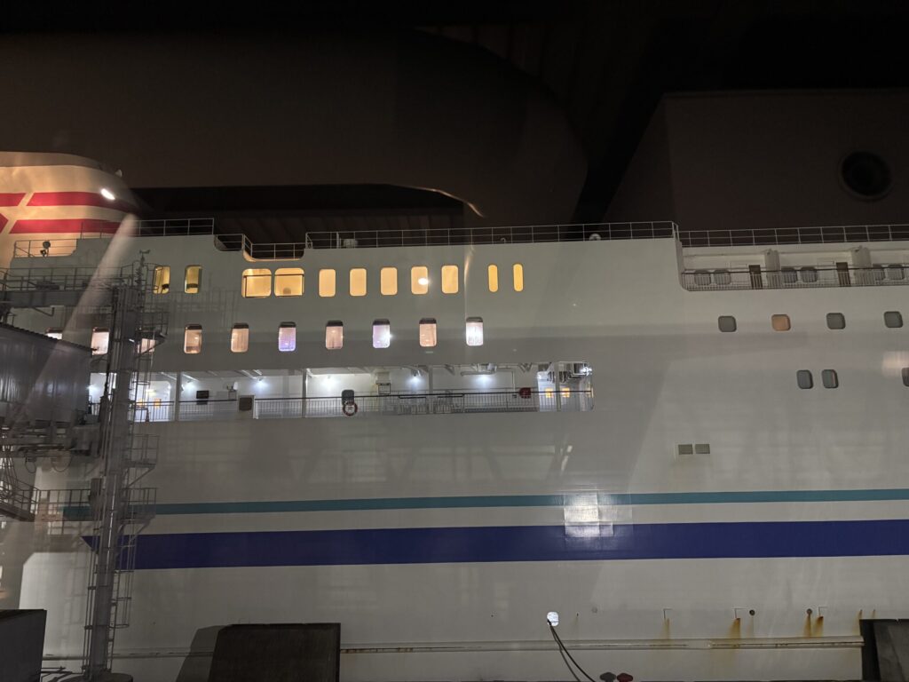 250926金 23:55敦賀港発 苫小牧行きフェリーで北海道へ 2025 12/07 教授のひとりごと 2025年12月7日「えんいち一人旅」のYoutubeを見てどうしても乗りたくなり「すいせん」のスイートルームを2ヶ月前に予約し、妻を無理やり誘って北海道に行きました。真夜中の出発です。Screenshot 教授のひとりごと よかったらシェアしてね! URLをコピーしました! URLをコピーしました! 250918 脳神経外科専門試験合格祝賀会を開催 250927土 敦賀苫小牧フェリー二日目 この記事を書いた人 kikuta 関連記事 250927日 支笏湖と千歳水族館ノーザーンホースパークに行き、飛行機で帰ってきました 2025年12月7日 250927土 敦賀苫小牧フェリー二日目 2025年12月7日 250918 脳神経外科専門試験合格祝賀会を開催 2025年12月7日 250912金-13土 第30回日本脳腫瘍の外科学会に参加してきました。 2025年12月6日 250910 西嶋久勝 高浜新町長にお会いしました。 2025年12月6日 250827福井大学高度被ばく医療支援センターを見学しました 2025年12月4日 250823土 第5回外視鏡手術研究会に参加しました。 2025年11月13日 250808福井大学松岡キャンパス オープンキャンパスを開催しました。多くの高校生が参加してくださり、大盛況でした 2025年11月12日