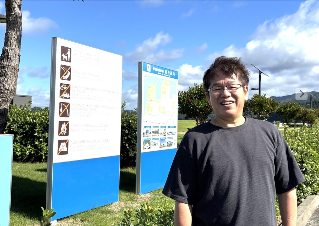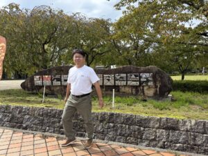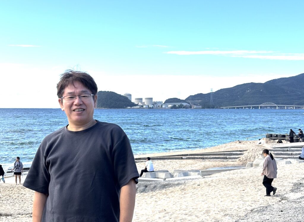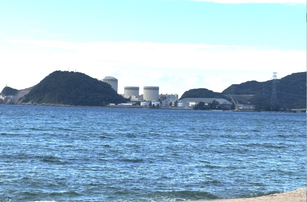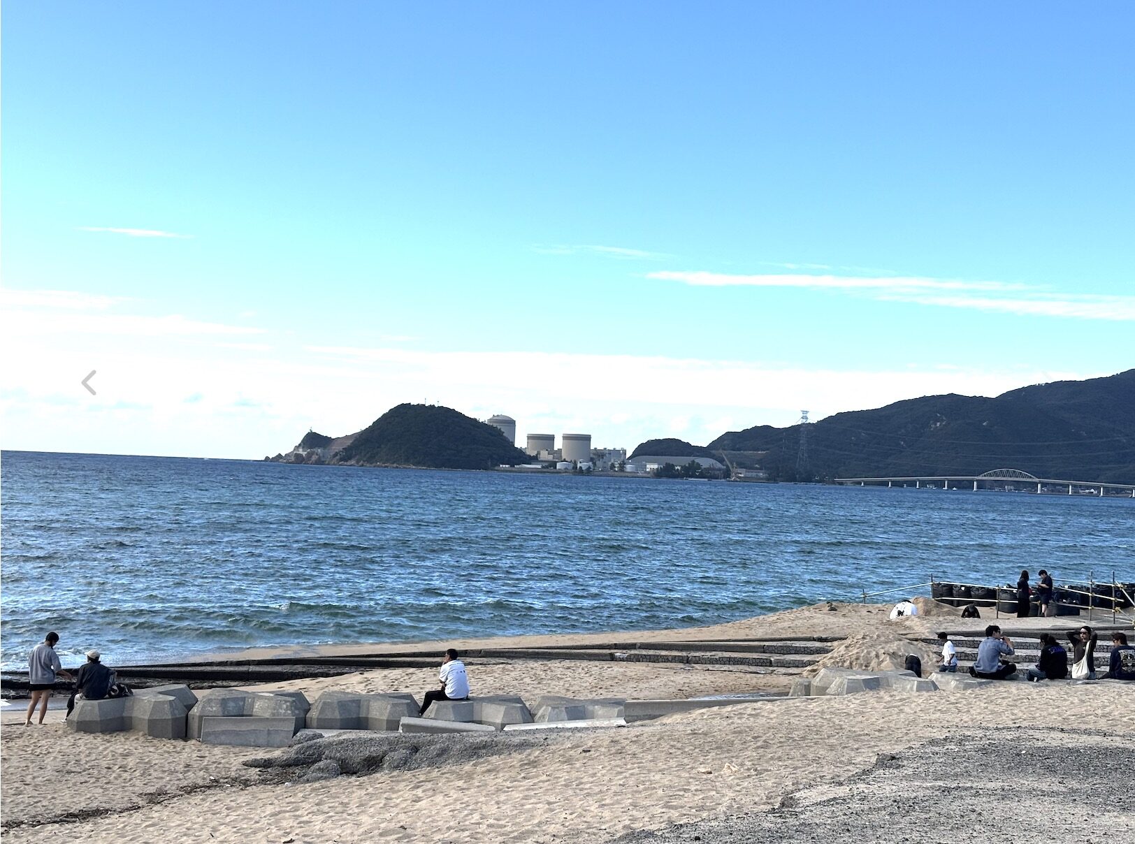 そのあとは美浜原発を見に行きました。水晶浜という美しい砂浜の後に映っています。