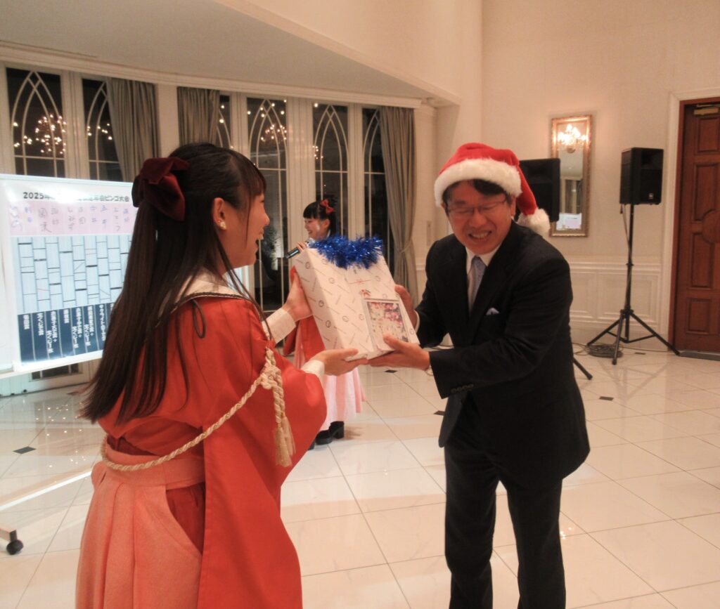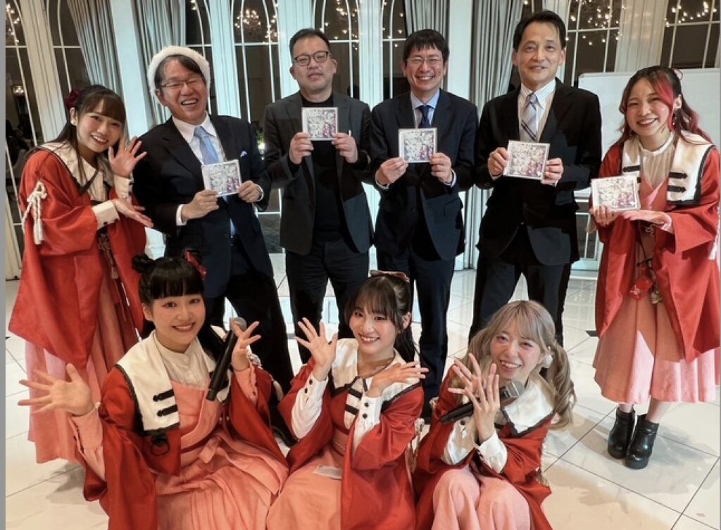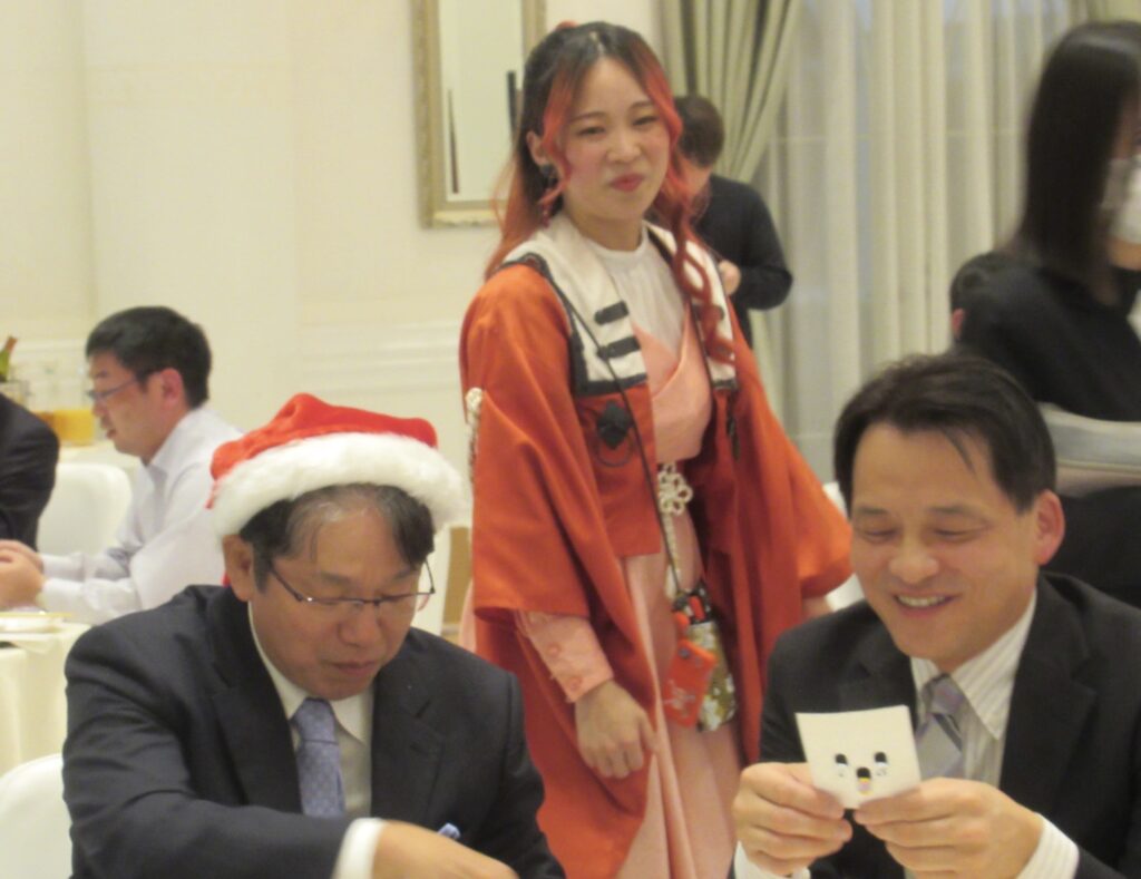 昨年に続いて木戸屋教授が幹事をしてくださり、ローズガーデンで医学部忘年会が開催されました。今年はきちんと着座してのコース料理で、最初からいつもとはひと味違う感じでしたが、なんと福井県ご当地アイドル サクライトの皆さんがやってこられました。