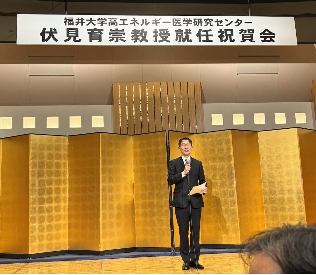 260223 伏見育崇先生、高エネルギー医学研究センター教授就任祝賀会 2026 3/21 教授のひとりごと 2026年3月21日京都大学放射線科 中本裕士教授の主催でグランビア京都で開催されました。終始和やかな雰囲気で行われ、京都大学放射線科のフレンドリーな空気が感じられました。伏見教授の今後のご活躍に多いに期待しております。 教授のひとりごと よかったらシェアしてね! URLをコピーしました! URLをコピーしました! 260221土 令和7年度芝蘭会福井支部総会が開催されました 2026年2月 74歳女性右聴神経腫瘍の手術を行いました。 この記事を書いた人 kikuta 関連記事 260306金 北海道神経セミナーで講演しました。 2026年3月21日 260228土 第31回日本脳神経外科救急学会に参加してきました。 2026年3月21日 260227金 福井大学と報道各社との意見交換会が繊協ビルで開催されました。 2026年3月21日 260225水 福井大学一般入試(前期)が行われ、夜には福井日赤で福井脳神談疾患談話会が開催されました。 2026年3月21日 260214土 日本酒を楽しもうの会(京大少林寺吉田監督を偲ぶ会) 2026年3月21日 260213白馬セミナー2日目 八方尾根スキー 2026年3月21日 260212 白馬セミナー白馬東急ホテル1日目 2026年3月19日 260206福井大学 医師国家試験出陣 2026年3月19日