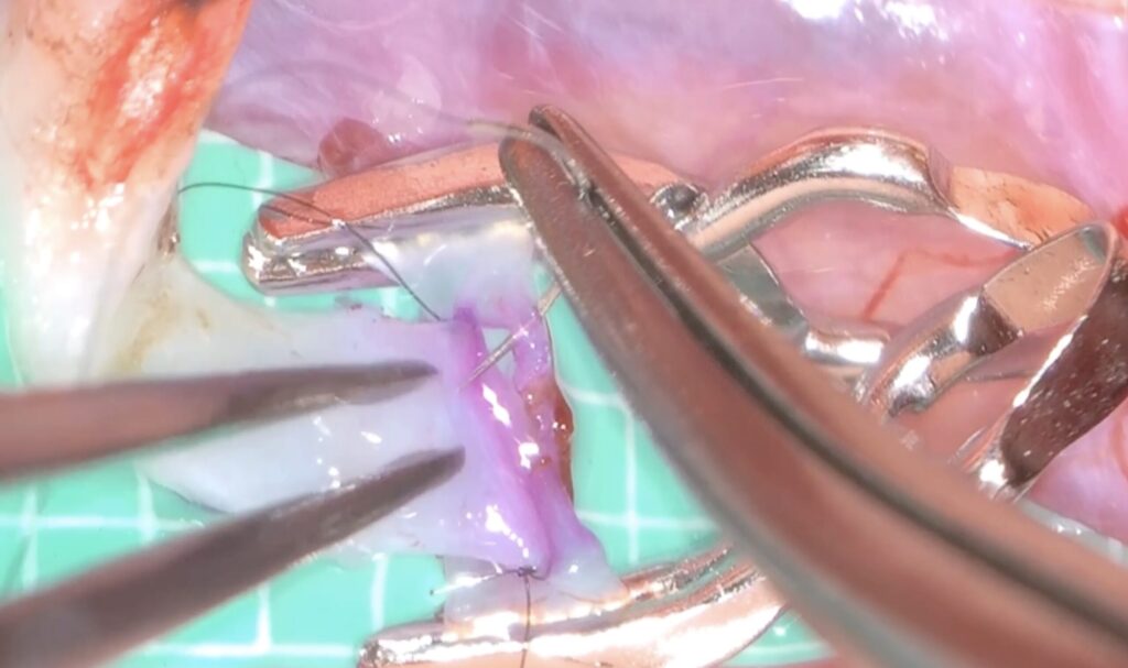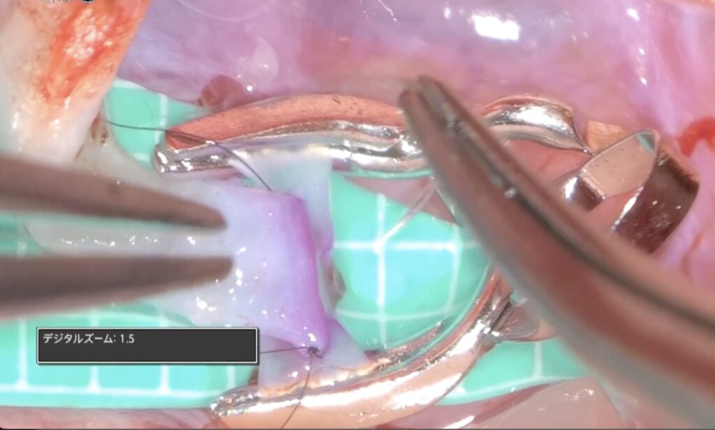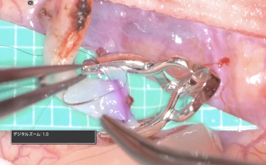 外視鏡を用いると吻合時にはデジタルズームをフットスイッチで入れると瞬時に高拡大にできます。