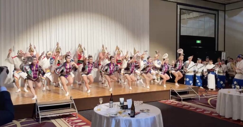 18:30から社員総会が行われ本場の阿波踊りのデモンストレーションがありました。参加者も踊らされました。