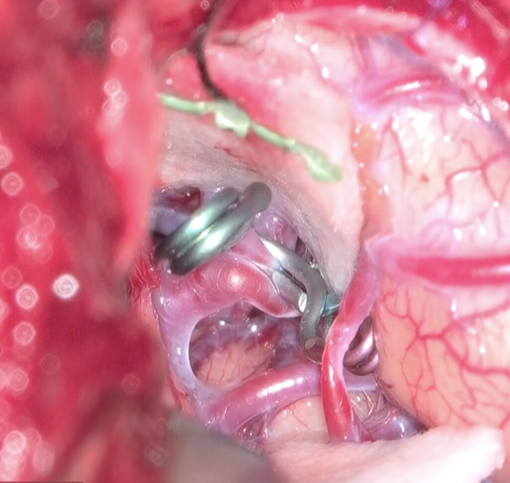 58歳男性 中大脳動脈瘤を鍵穴クリップしました。合併症なく退院されました。 2025 12/17 脳動脈瘤・鍵穴 2025年12月17日58歳の未破裂脳動脈瘤のクリッピング術を鍵穴で行いました。ScreenshotScreenshotScreenshotScreenshotScreenshotScreenshotScreenshot 脳動脈瘤・鍵穴 よかったらシェアしてね! URLをコピーしました! URLをコピーしました! 44歳女性 SAH PICA遠位部動脈瘤クリッピングを指導しました。 この記事を書いた人 kikuta 関連記事 44歳女性 SAH PICA遠位部動脈瘤クリッピングを指導しました。 2025年12月17日 59歳女性の右中大脳動脈瘤を鍵穴クリッピングをしました。後遺症なしでした。 2025年12月12日 2025年5月 68歳女性未破裂Acom 動脈瘤6.6mmのクリッピング術 2025年9月26日 前交通動脈瘤をクリッピングしました 2025年2月26日 大型右中大脳脳動脈瘤をバイパス+クリッピングしました 2025年2月19日 湖東記念病院で井上卓郎先生と一緒に動脈瘤手術を行いました 2025年2月19日 前交通動脈瘤を鍵穴クリップしました。 2025年2月19日 中大脳動脈瘤を鍵(かぎ)穴でクリップしました 2025年2月4日