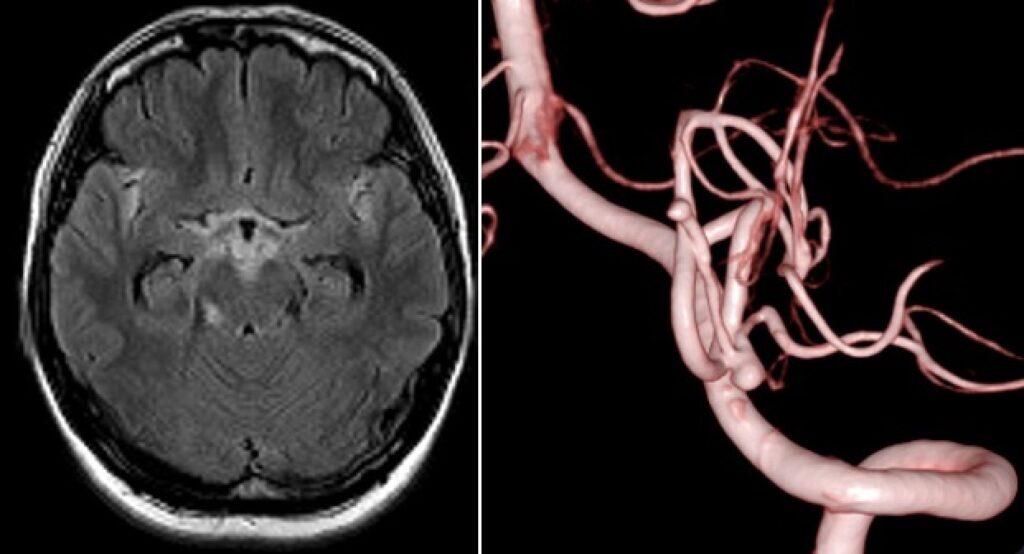 59歳女性の右中大脳動脈瘤を鍵穴クリッピングをしました。後遺症なしでした。