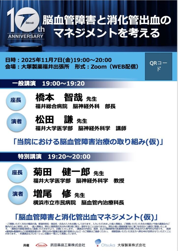 251107金 横浜から増尾修先生をお招きして脳血管障害と消化管疾患セミナーを福井で行いました。